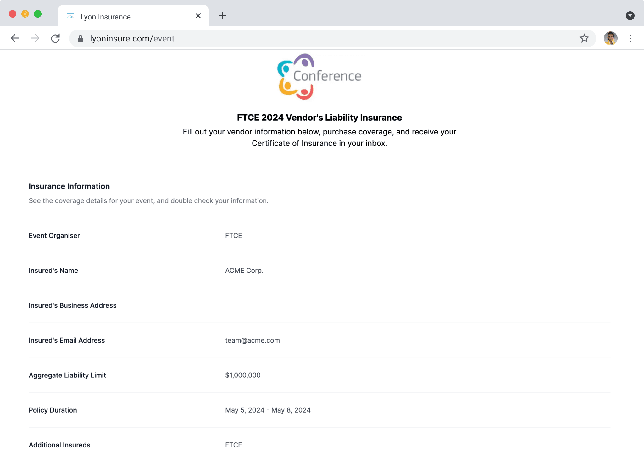 Select from a range of ready-to-use insurance policies tailored to meet the specific needs of your event.